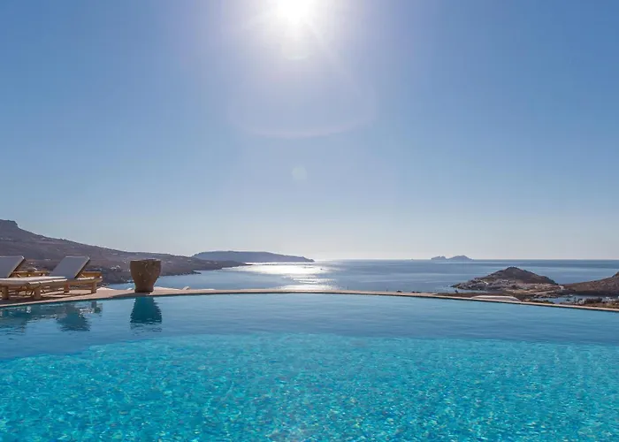 Situada a 1 km de la Playa Kalafatis, Alegria Mykonos 7 Suites Kalafatis, una villa frente a la playa, ofrece acceso a una piscina. Con vistas al mar, la villa está situada a unos 10 minutos en coche de la Playa Ftelia.